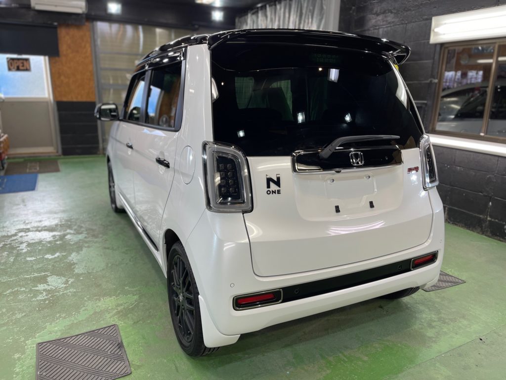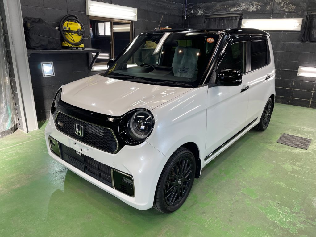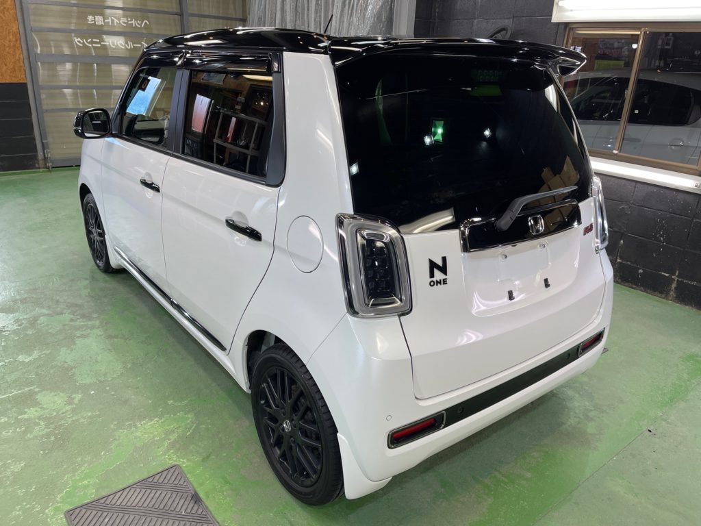 HONDA N-ONE RS お世話になっていますオーナー様より、運転席肘部+シート座面クリーニング、窓ガラス全面コーティング、ボディガラスコーティング定期メンテナンスのご依頼です。