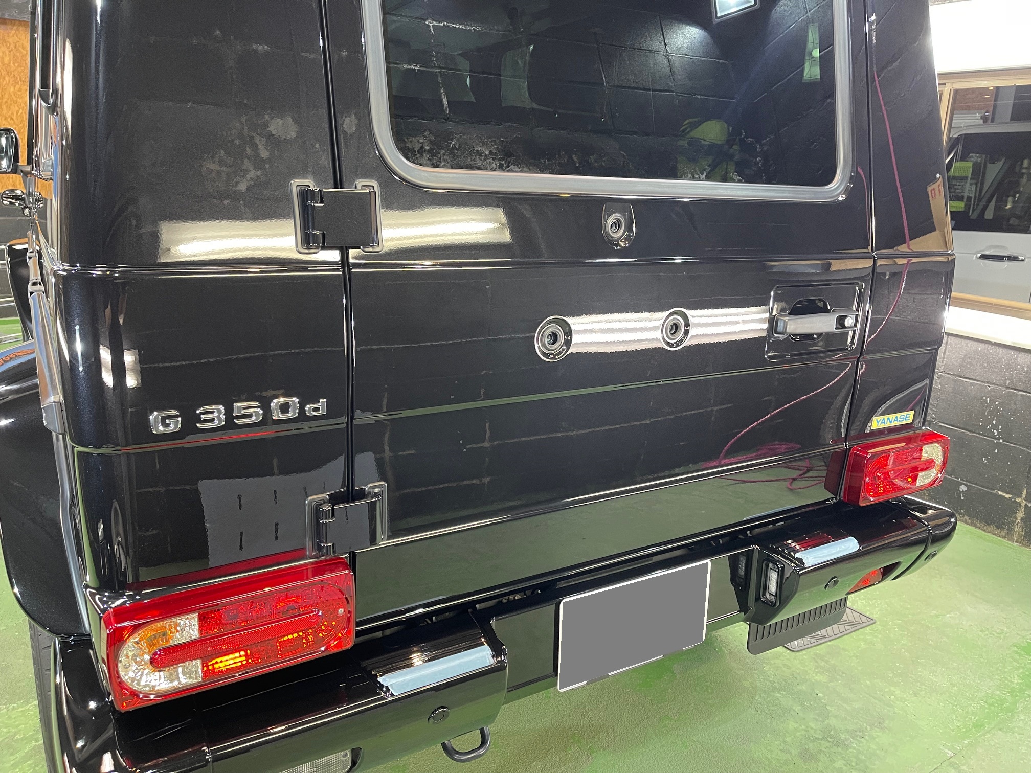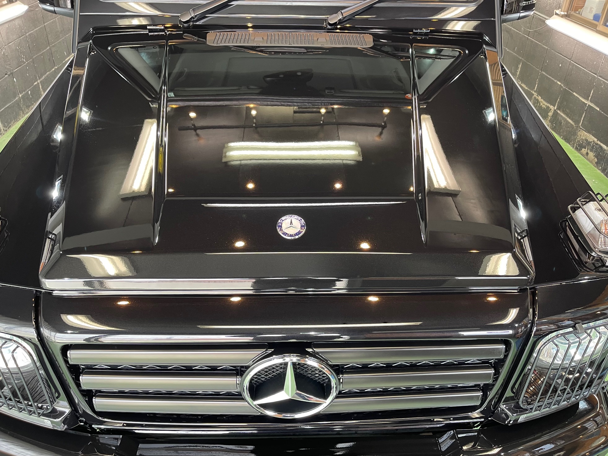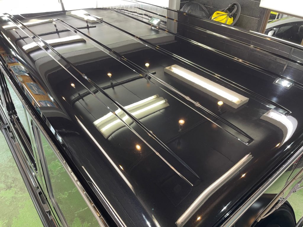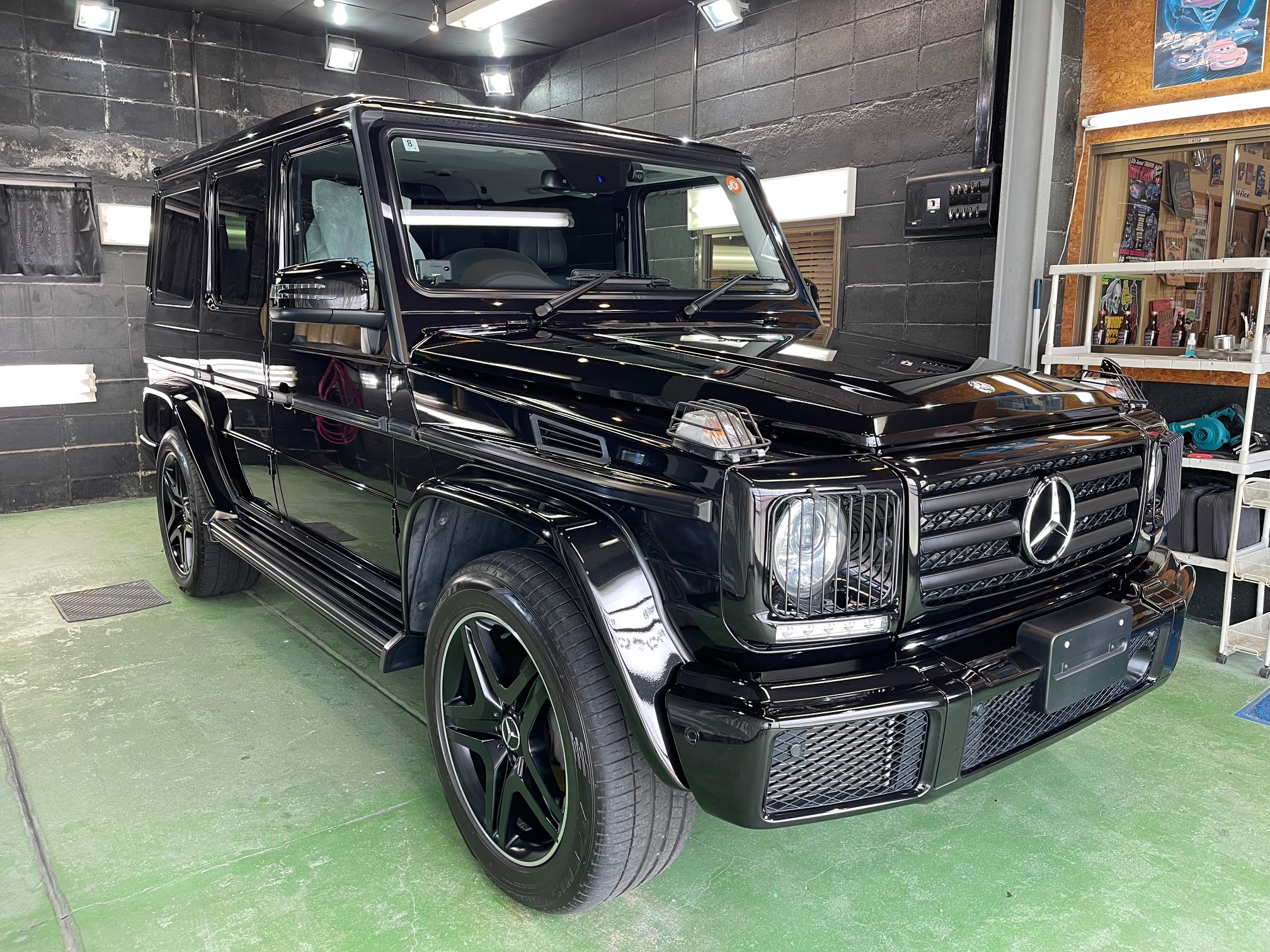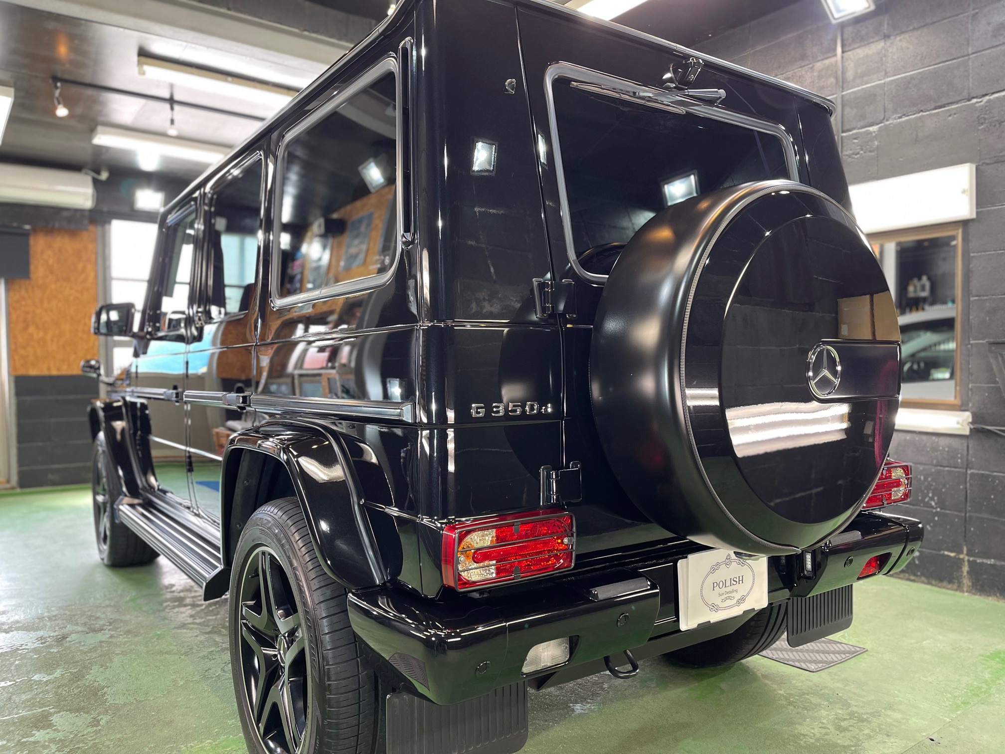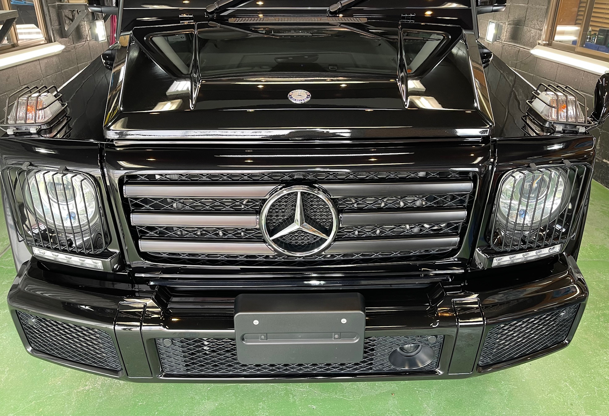 MERCEDES-BENZ G350d 3月の初めに塗装でお世話になったオーナー様より、窓ガラスのベタ付き除去(写真撮り忘れ、、泣)ボディ研磨作業、ボディガラスコーティング施工のご依頼です。