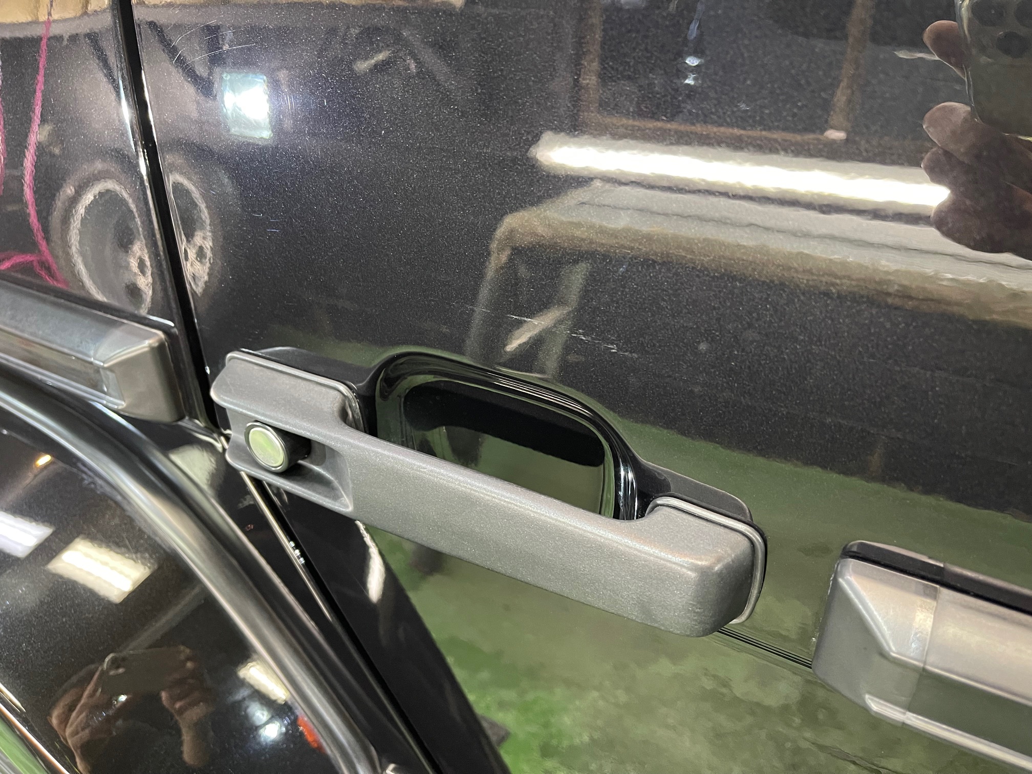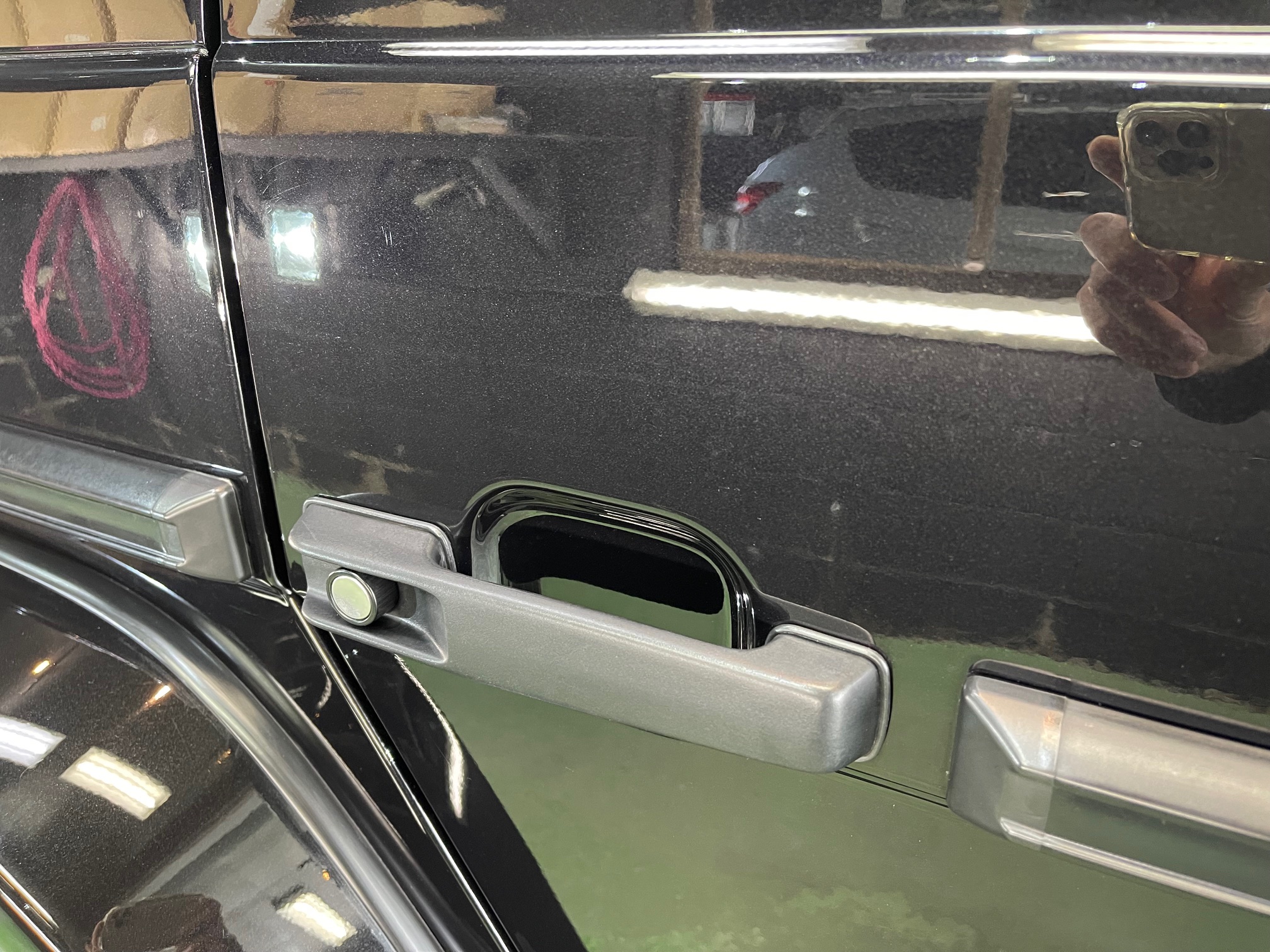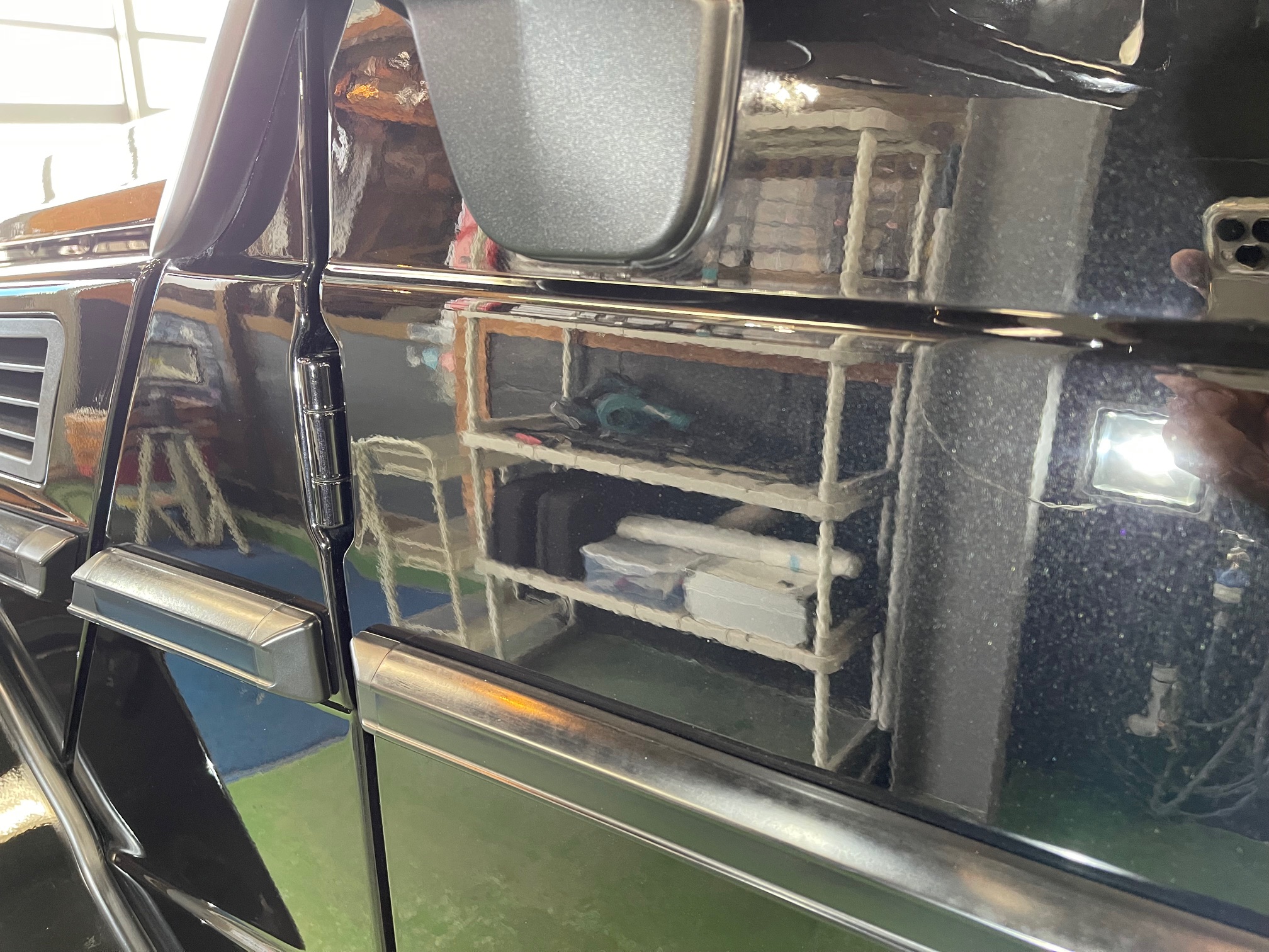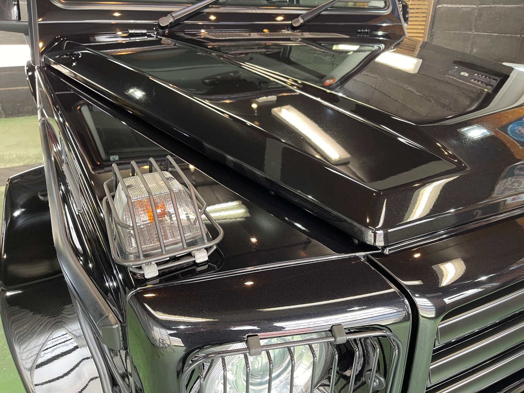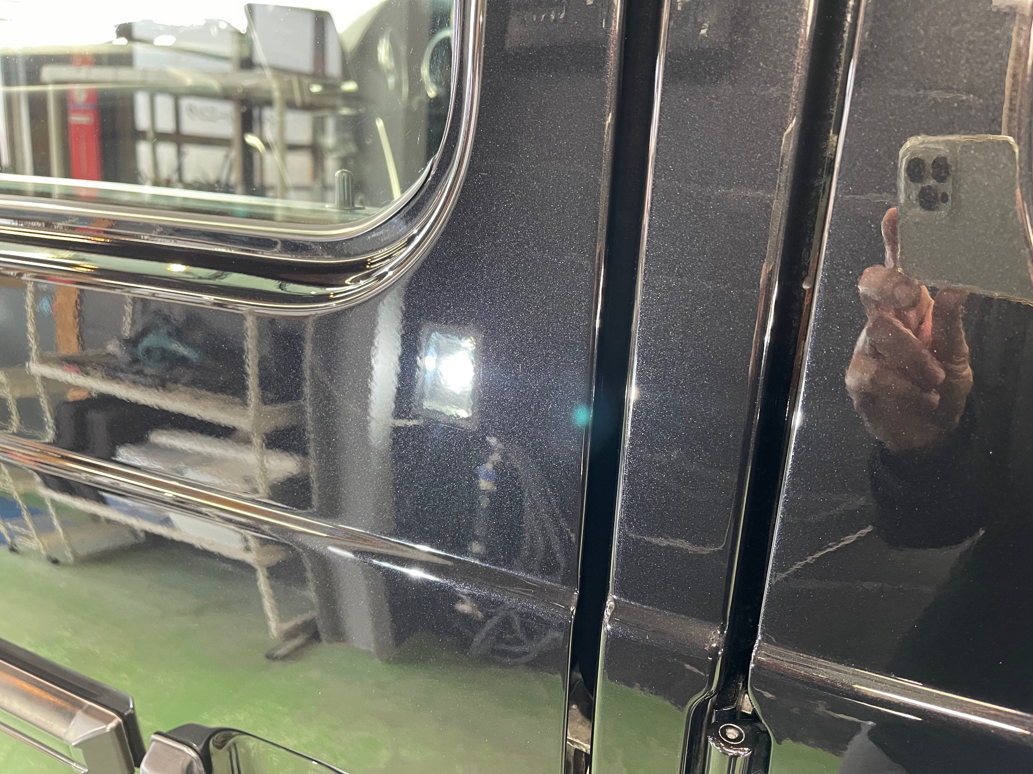 MERCEDES-BENZ G350d 3月の初めに塗装でお世話になったオーナー様より、窓ガラスのベタ付き除去(写真撮り忘れ、、泣)ボディ研磨作業、ボディガラスコーティング施工のご依頼です。