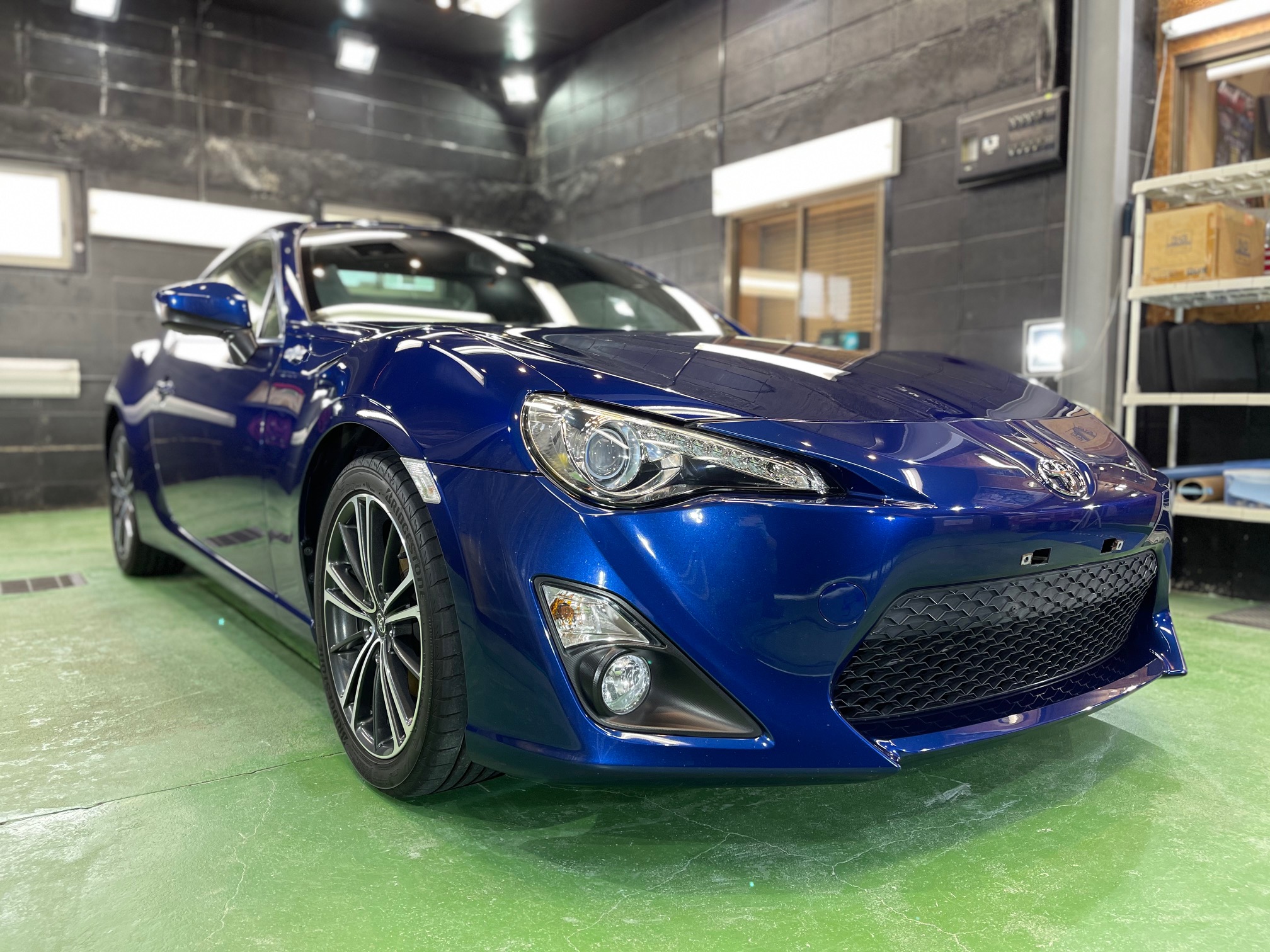 お客様よりご紹介のTOYOTA 86。市内の車屋さんより塗装後の鏡面仕上げ、ボディガラスコーティング施工のご依頼です。