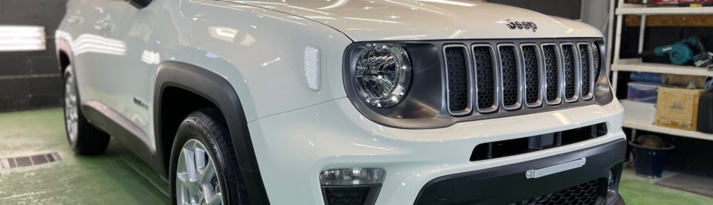 JeeP RENEGADE LIMITED お世話になっておりますオーナー様より、お車買換えにて、窓ガラスコーティング、ホイールコーティング、ボディガラスコーティング施工のご依頼です。鉄粉除去やブツ取り後の磨きキズ、塗装表面を整え一度リセットしてのコーティング施工です!