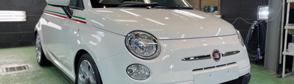 ご紹介によりご入庫の FIAT 500C 約10年経過したお車、鉄粉の付着や蓄積された水垢、洗車キズで光の乱反射をしたモヤモヤの塗装面は適切な研磨作業で光の正反射化、鏡面化し、オーナー様の気になる箇所を丁寧に作業し、オーナー様も大変満足の一台に仕上がりました♪
