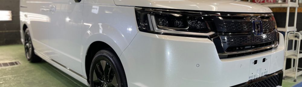 HONDA STEP WGN SPADA お世話になっていますオーナー様より、窓ガラスコーティング、ボディガラスコーティング施工のご依頼です。新車登録より約6ヶ月ボディ表面には水垢や鉄粉の付着、Bピラーには洗車キズも目立ちましたので一度塗装面を研磨作業でリセットしてからのコーティング施工となりました。