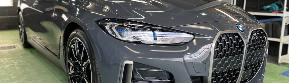 BMW M440i 以前お会いした事もあるオーナー様。ご紹介によりお電話を頂き、日程調整をして新車納車後にご来店頂きました。カーフィルム(運転席、助手席透明断熱、Rガラス5面スモークフィルム)窓ガラスコーティング、ボディガラスコーティング施工のご依頼です。フィルム残り、スケール染み、磨き跡など一度塗装面を研磨作業で整えコーティング施工となりました。