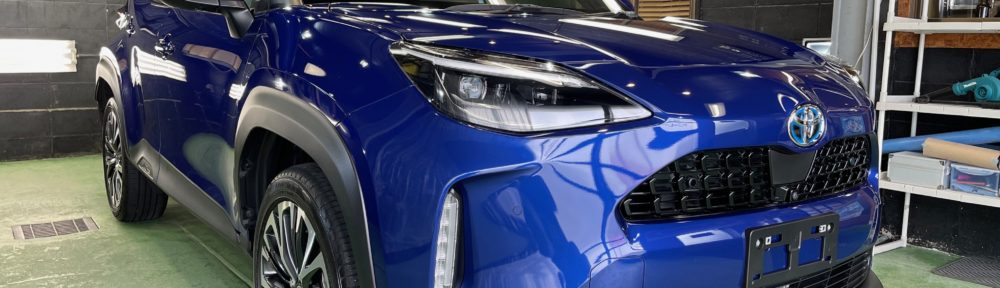 TOYOTA YARIS CROSS 昨年から新車にお乗換えにてお世話になっていますオーナー様より、窓ガラスコーティング、ボディガラスコーティング定期メンテナンスのご依頼です。軽度の水垢や洗車キズ+フロントガラスやフロント周りの塗装ミスト除去、、。洗車キズや水垢、ミスト除去、ポリッシュメンテナンスでお車の美観はUPです♪