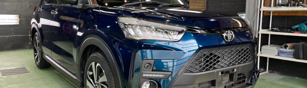 TOYOTA RAIZE お世話になっていますオーナー様より、新車コーティング施工から5年間のサポート期間が終了し、新規継続ボディガラスコーティング、窓ガラスコーティング、ホイールコーティング施工のご依頼です。異物除去やボディ全体のポリッツシュ作業、コート剤+トップコート施工。上面部の深いシミや経年劣化はあるのの全体的に見ればキレイは確実に維持できています。