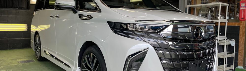 TOYOTA ALPHARD 同級生のオーナー様より、窓ガラス全面コーティング、ボディガラスコーティングのご依頼です。今年の6月に購入のご連絡をいただき予想よりも早く3ヶ月程で納車、ディーラーからそのまま当店へご入庫。ボンネットやルーフにはキズ防止のラッピングシートが貼られ洗車前に丁寧に剥がし、窓ガラスの油膜取り、洗車~研磨作業、脱脂作業~窓ガラスコーティング、ボディガラスコーティング施工と新車以上の艶と輝きになりました♪