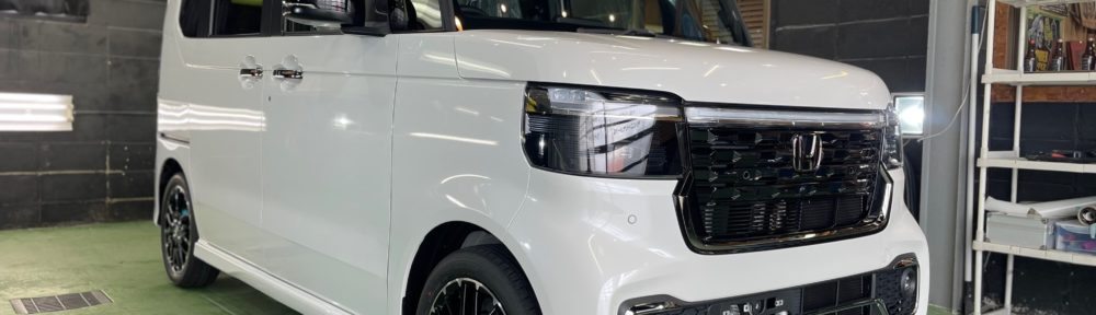 HONDA N-BOX CUSTOM お世話になっている販売店より、ホイールコーティング、窓ガラス全面コーティング、ボディガラスコーティング施工ご依頼です。