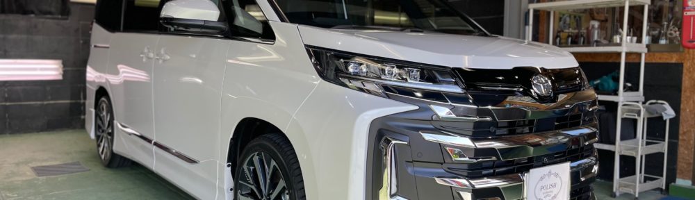 TOYOTA NOAH お車ご購入の度に当店へのご依頼誠にありがとうございます。今年の4月にお問い合わせいただき今回新車にてご購入のオーナー様、Rガラス5面スモークフィルム15%、窓ガラス全面コーティング、軽研磨、ボディガラスコーティング施工のご依頼です。
