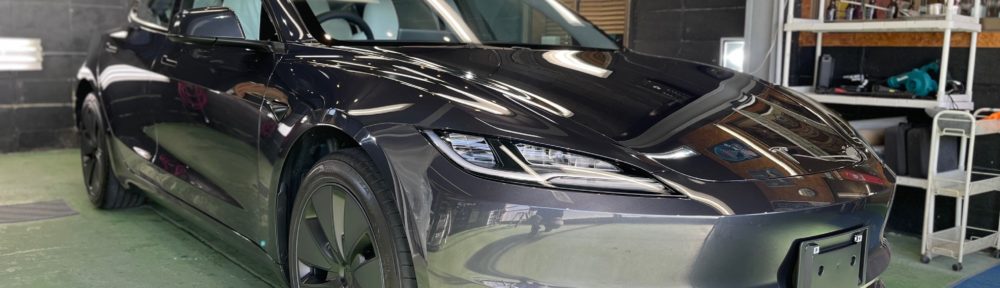 Tesla Model 3 今回新車ご購入にてご紹介によりご来店のオーナー様。窓ガラス全面コーティング、ボディガラスコーティング施工のご依頼です。窓ガラスもスモークフィルムを予定されていましたが暫くはクリアーな視界を楽しまれるそうです。