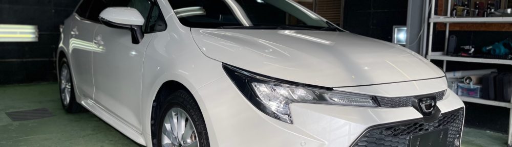 TOYOTA COROLLA Touring 新車ご購入時からお世話になり約5年。ボディガラスコーティング施工のサポート期間が終了し新規継続にて、「せっかくここまでキレイにして来たからキレイをまだ継続したい。」とオーナー様。窓ガラス全面コーティング、ボディガラスコーティング施工のご依頼です。