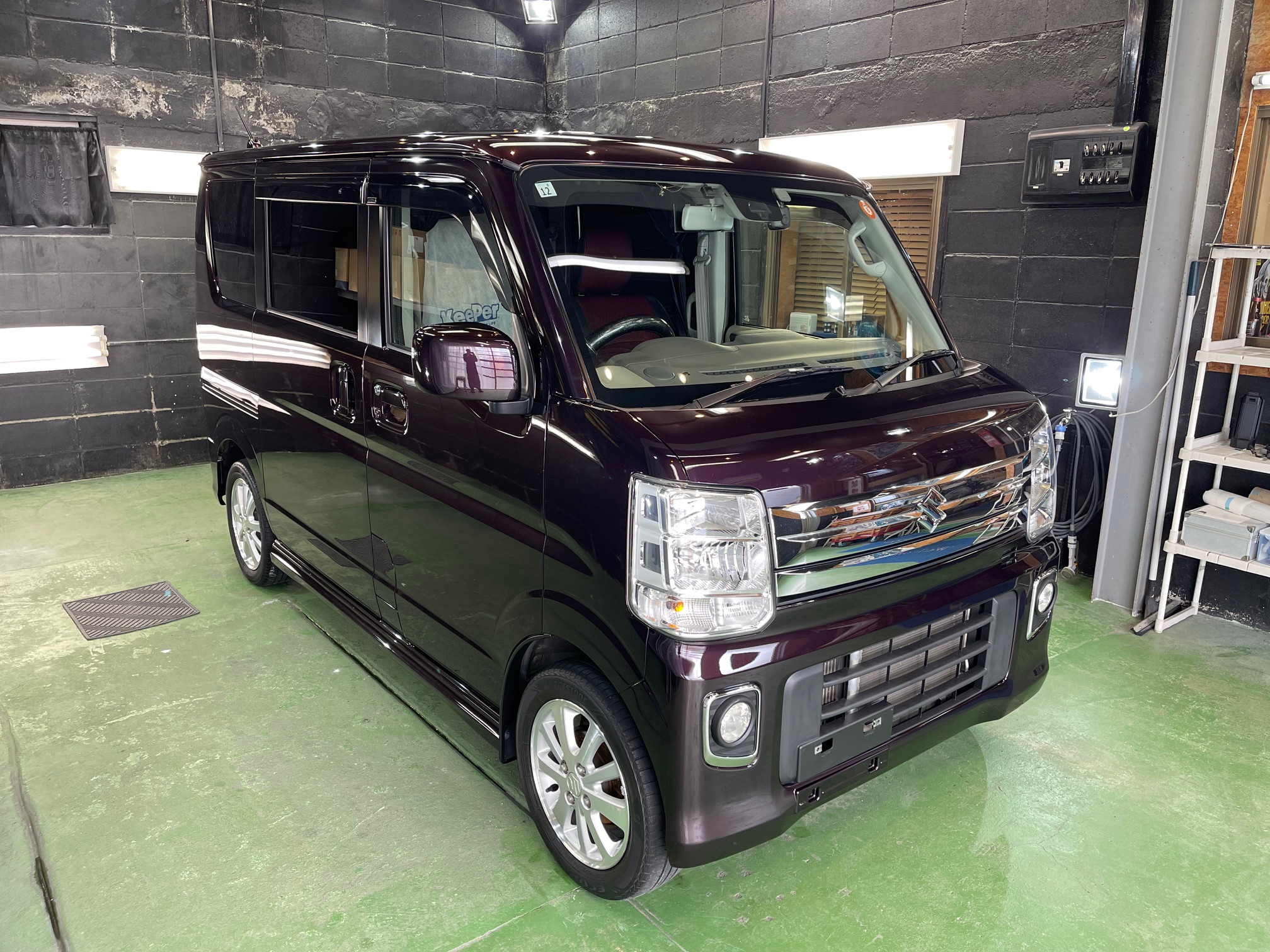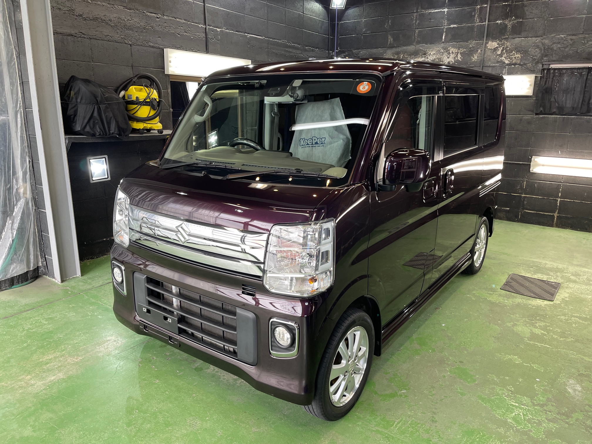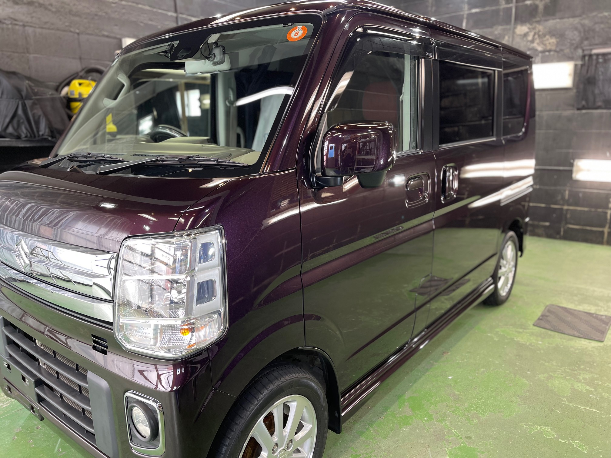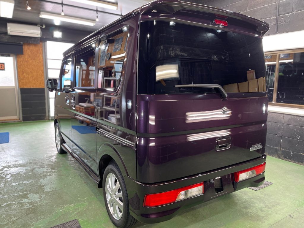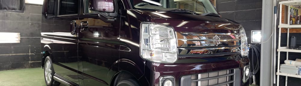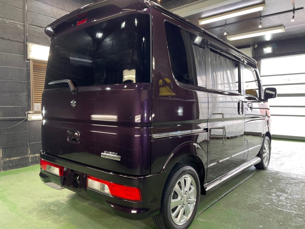 SUZUKI EVERY WAGON コーティング施工でお世話になっていますオーナー様より、コーティング保証期間が終了し新規継続にて、窓ガラス全面コーティング、ボディガラスコーティング施工のご依頼です。