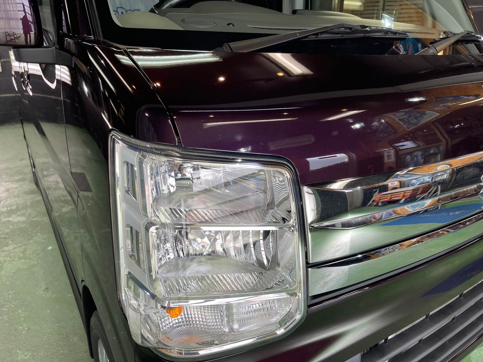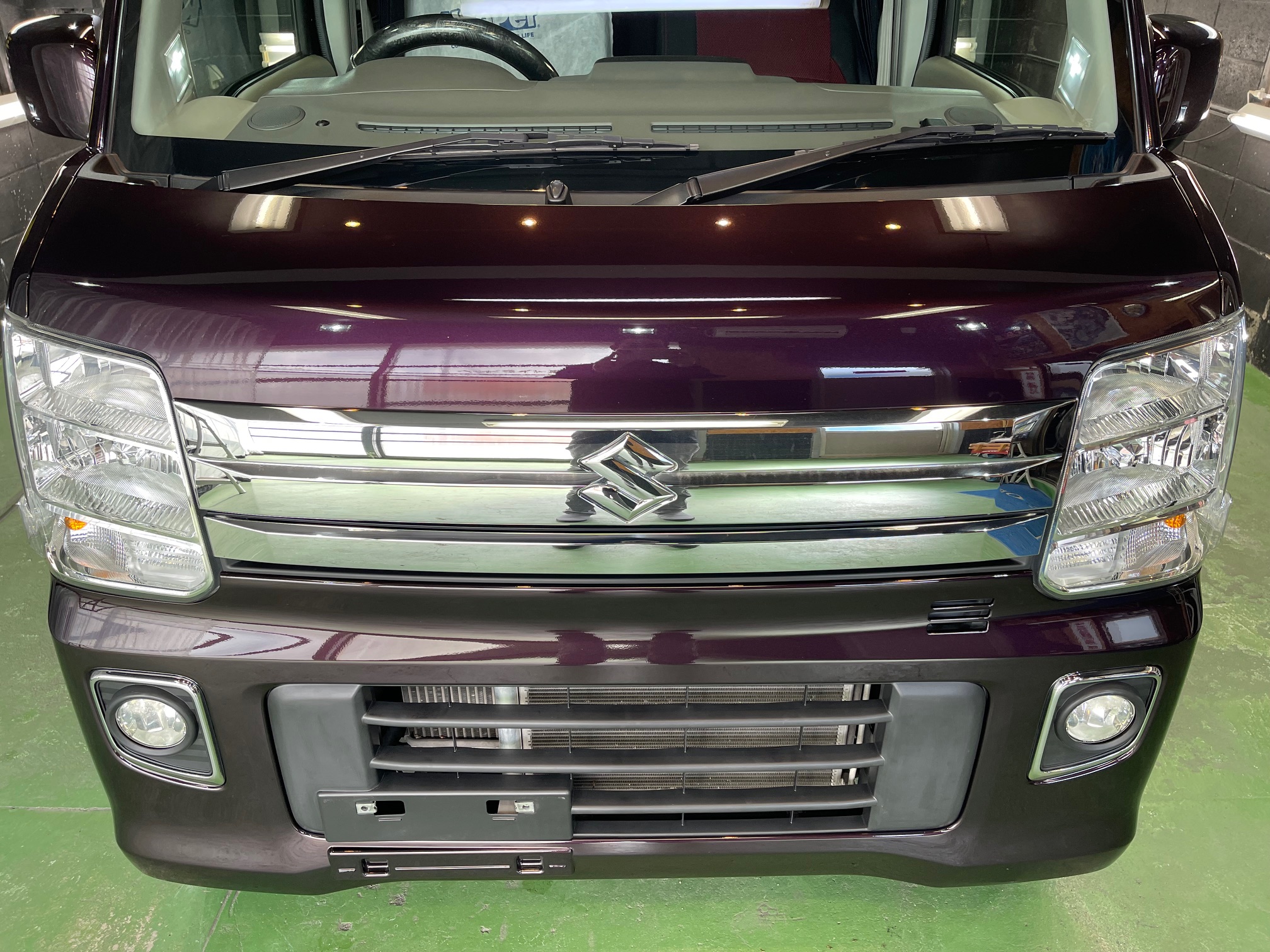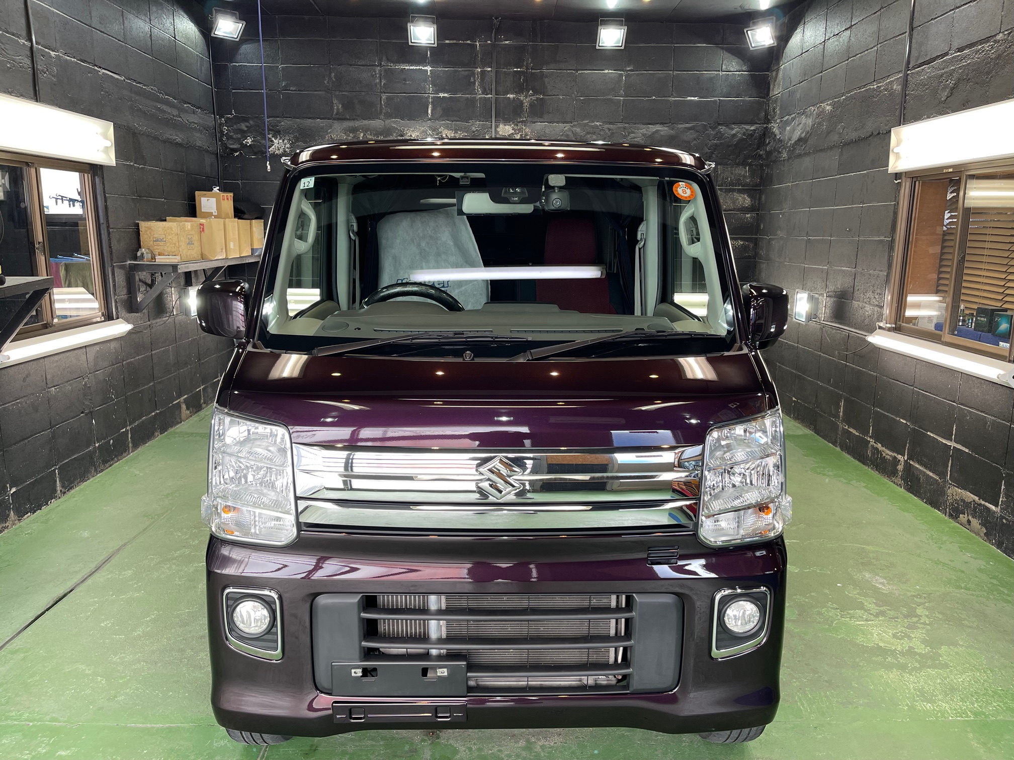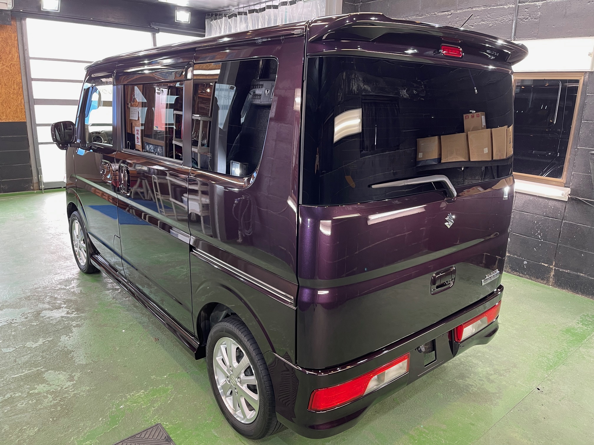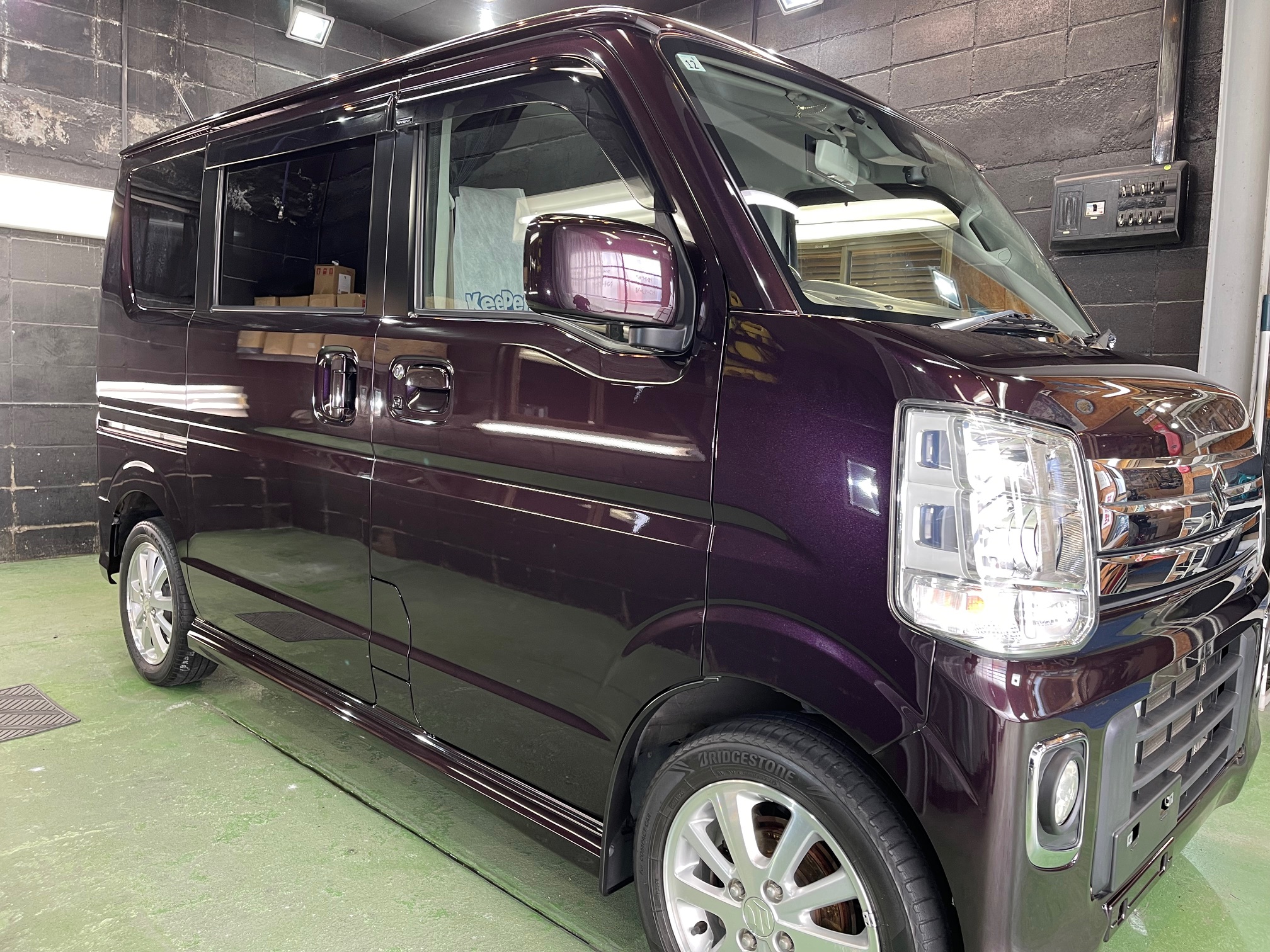 SUZUKI EVERY WAGON コーティング施工でお世話になっていますオーナー様より、コーティング保証期間が終了し新規継続にて、窓ガラス全面コーティング、ボディガラスコーティング施工のご依頼です。