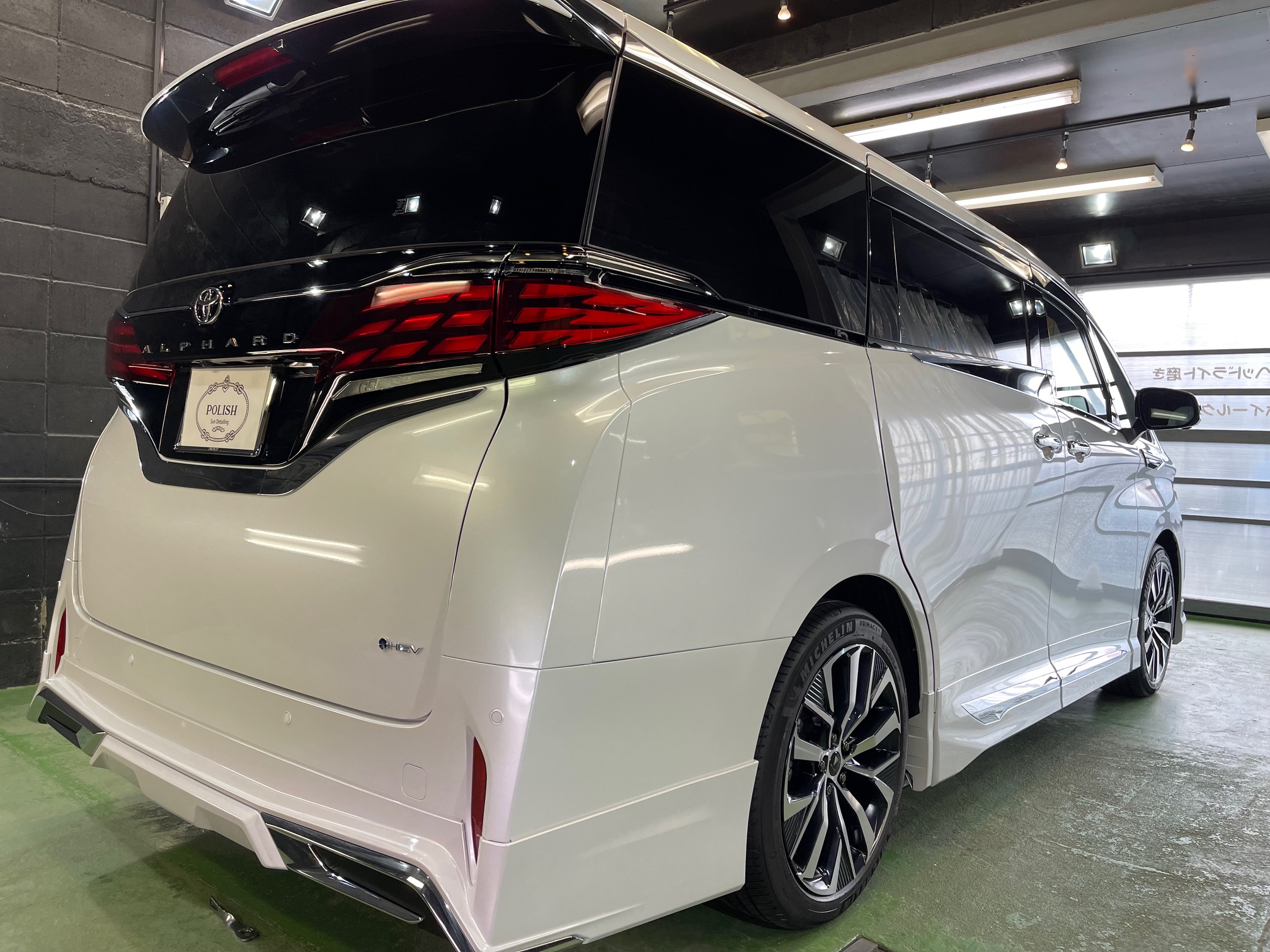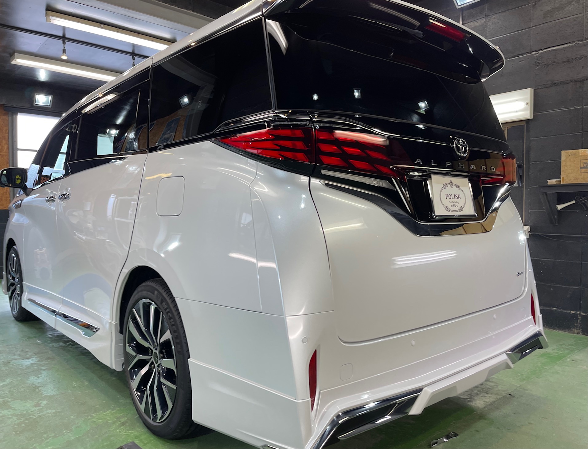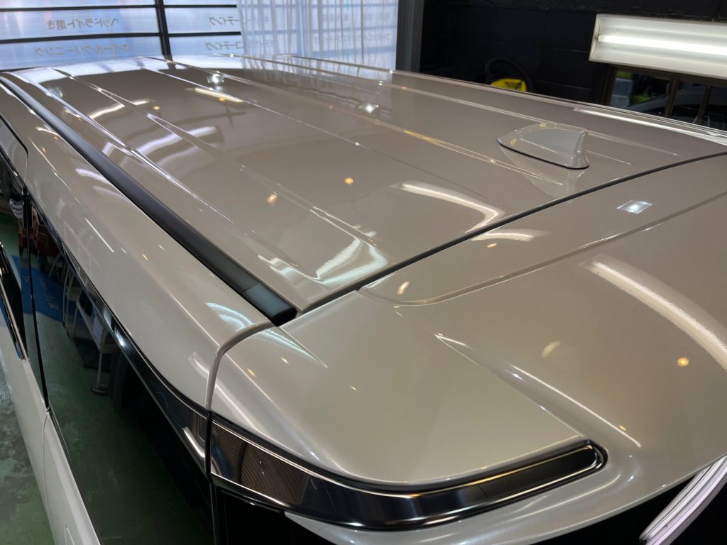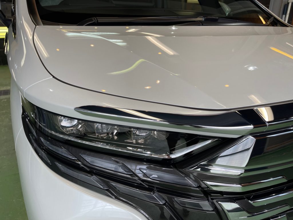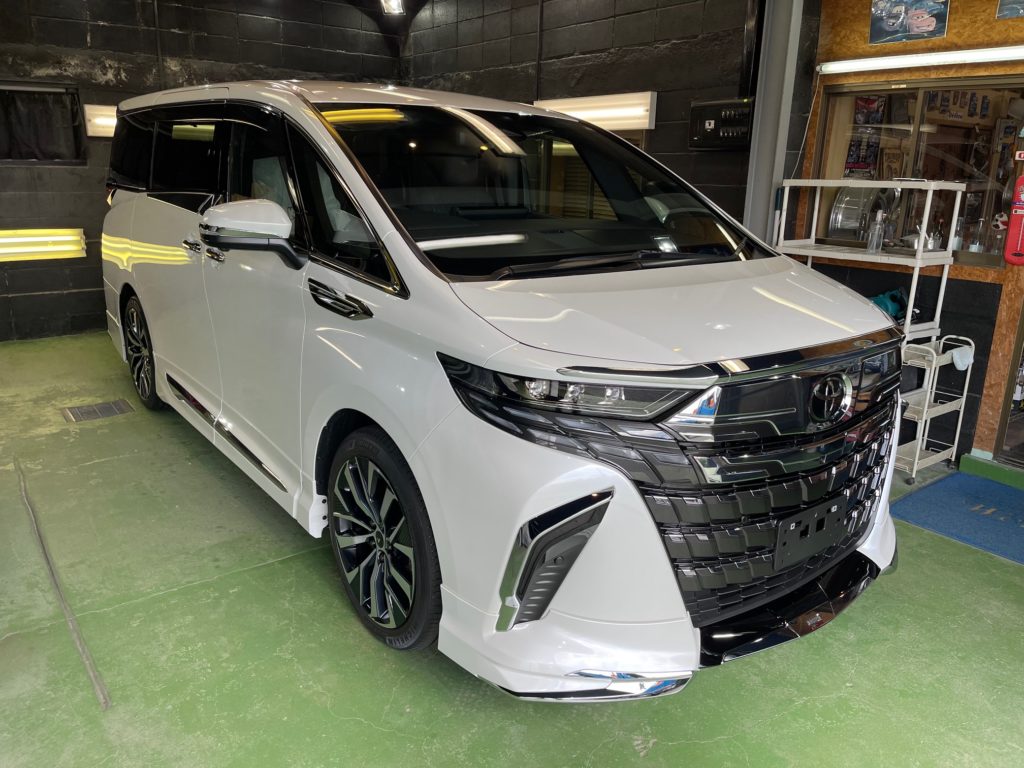 TOYOTA ALPHARD 同級生のオーナー様より、窓ガラス全面コーティング、ボディガラスコーティングのご依頼です。今年の6月に購入のご連絡をいただき予想よりも早く3ヶ月程で納車、ディーラーからそのまま当店へご入庫。ボンネットやルーフにはキズ防止のラッピングシートが貼られ洗車前に丁寧に剥がし、窓ガラスの油膜取り、洗車~研磨作業、脱脂作業~窓ガラスコーティング、ボディガラスコーティング施工と新車以上の艶と輝きになりました♪